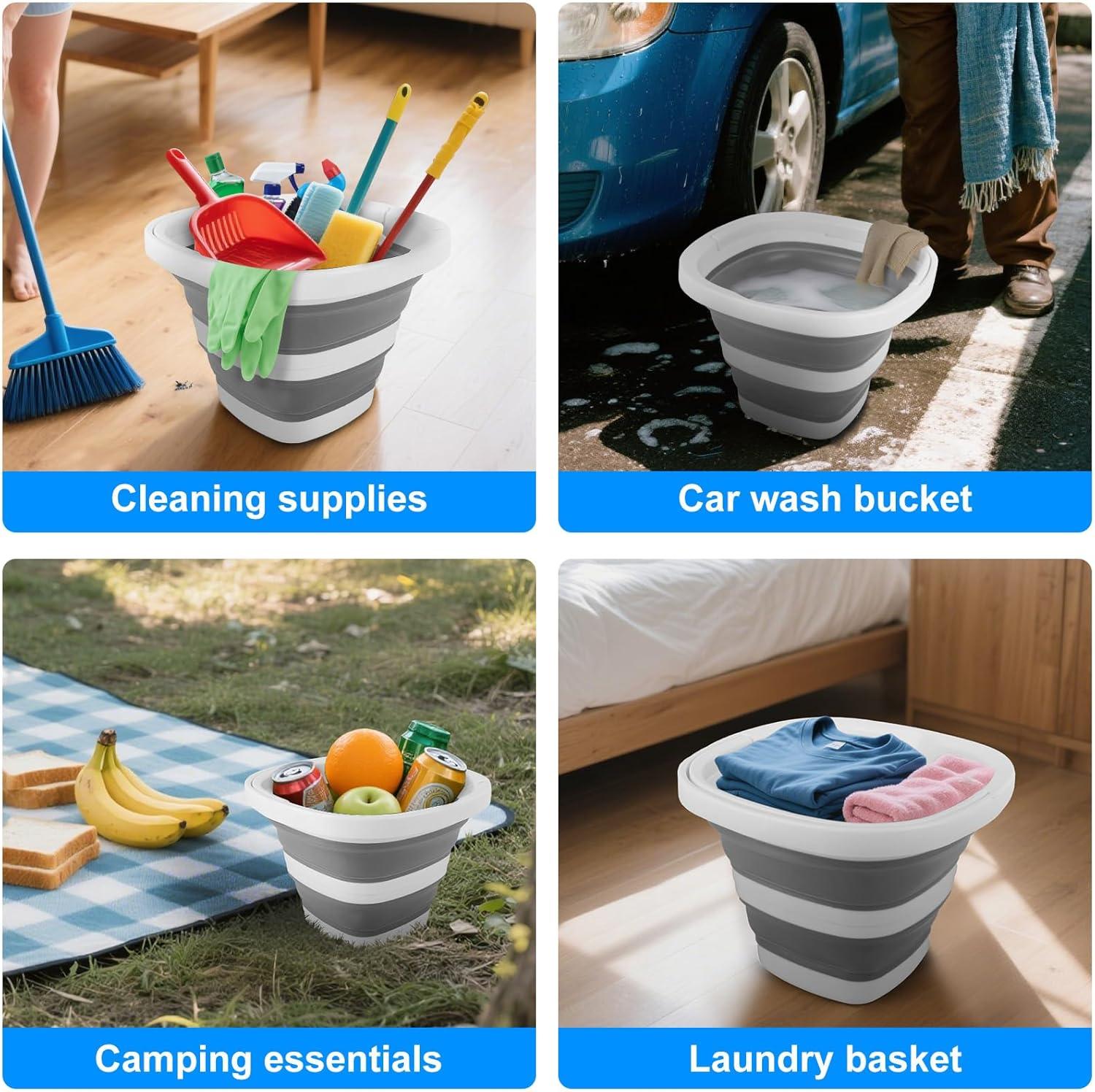 Versatile 5L Folding Bucket: This mopping bucket transitions seamlessly from household cleaning tasks (mopping floors, holding cleaning supplies) to outdoor car washing, serving as a fish bucket for live bait or garden watering companion. Perfect for kids’ beach sand play, camping dishwashing, rv laundry wash bucket, bucket for drinks, and gardening (harvest rinsing, tool storage). Doubles as a dog water bowl, car trash bin (use with bags), emergency vomit container, laundry wash basin, bait bucket, shower bucket, swamp bucket, or outdoor collapsible water container.